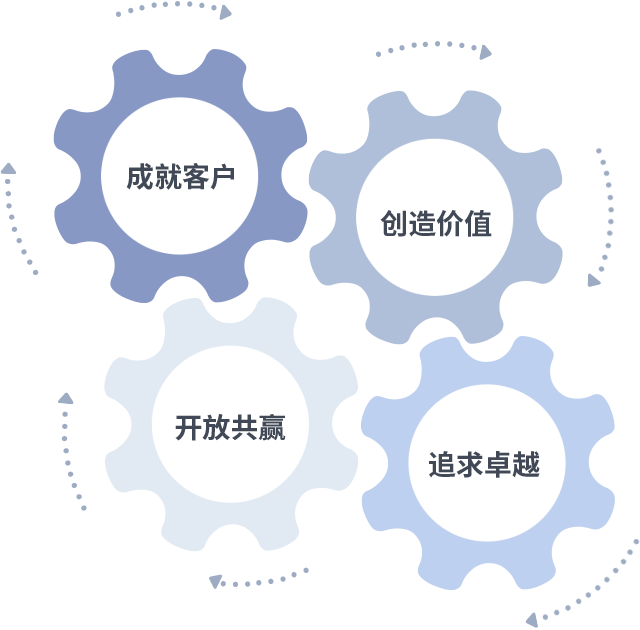 成就客户是一切决策的出发点,创造价值是衡量所有工作的标准,追求卓越是豪运国际做事做人的态度,开放共赢是豪运国际的格局也是最终的结果。价值观的齿轮环环相扣,推动着组织里的每个人不断向前。